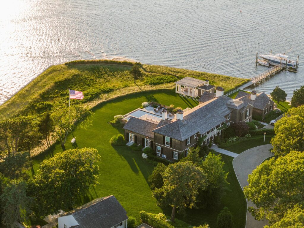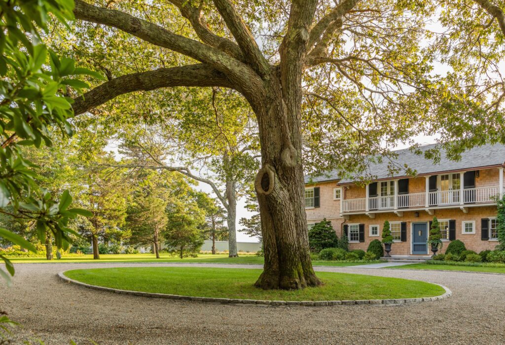 Sited at the end of the peninsula where it could greet the boats as they floated by, the estate, he says, “is magnificent and rare on the Cape because it’s totally hidden from the street and neighbors and has 270-degree water views plus two private docks.”