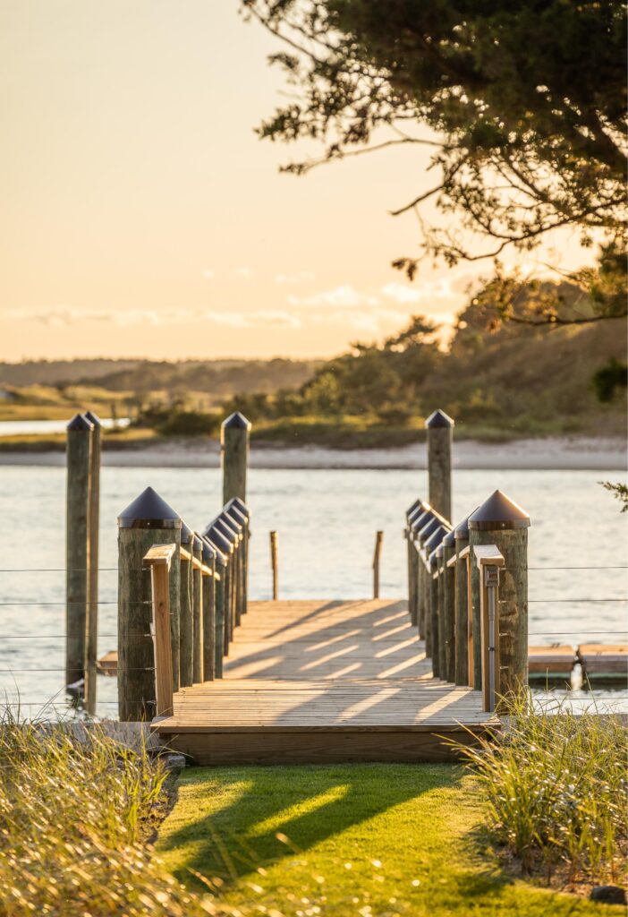 To improve access to the property’s private beach, the DGLA team added steps and redid the dock and boardwalk.