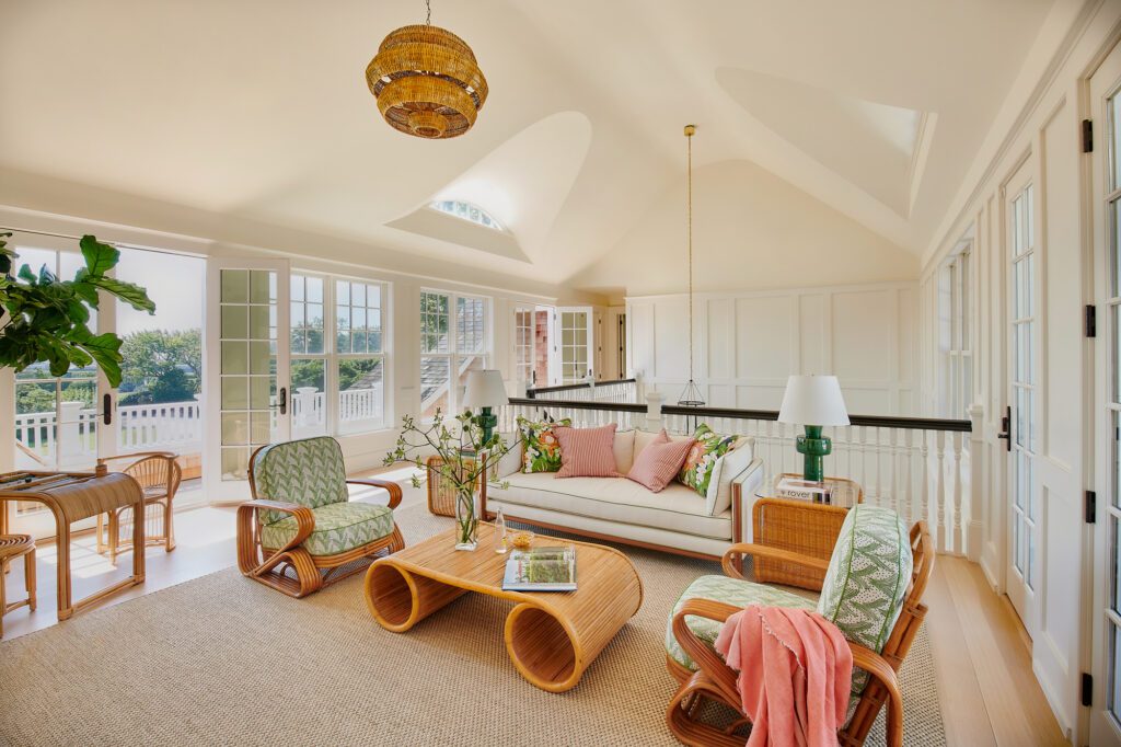 The designer also refurbished two family favorites: a bunk room and the so-called coffee lounge. “It’s a nice place to read,” she says of the lounge, which boasts a backgammon table and rattan furnishings. “You can see the ocean from its front terrace.”