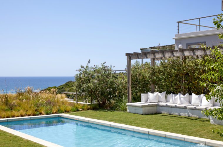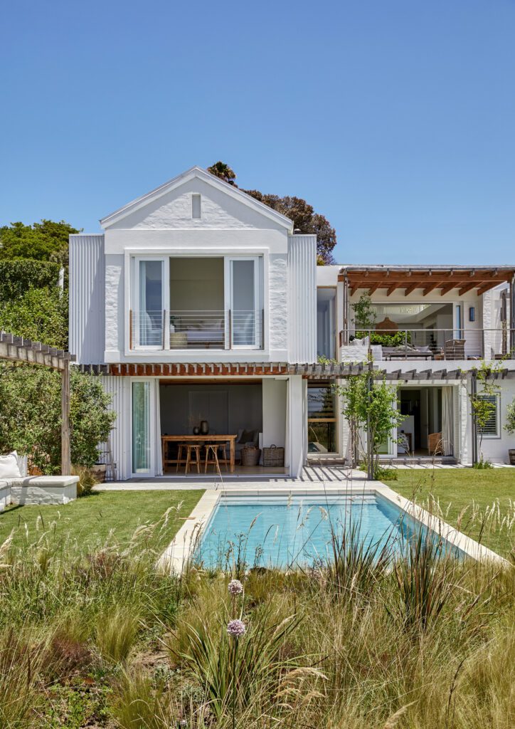 The connection to nature extends into the landscaping, conceived by award-winning designer Leon Kluge. “We wanted a very natural garden with lots of grasses and indigenous plants,” says Linda. “Leon and his team were incredible—they created something that feels wild but completely intentional.” The native plantings blur the boundary between home and environment, grounding the structure in its spectacular setting.