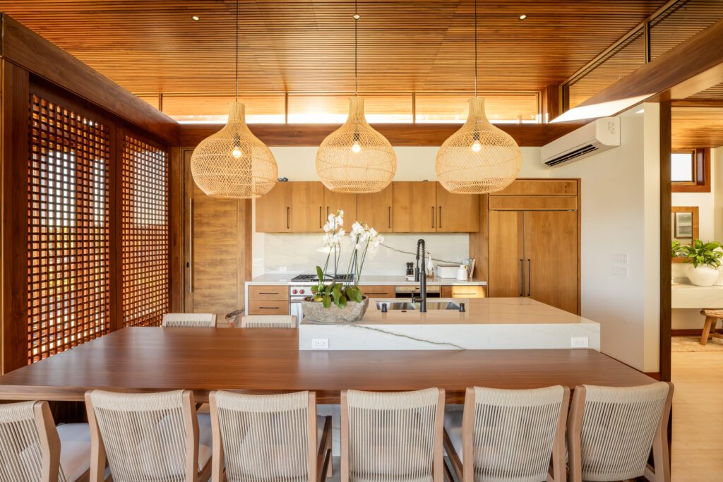 Set within Kukui‘ula on Kauaʻi, Hale Kiaka: Aepo Nei Custom Home #18 is a four-bedroom custom residence that captures Pacific Tropical living at its most refined. Modern architecture is softened by island influences, where warm wood tones, rich teak finishes, and natural textures are layered with intention to echo the surrounding environment. The result is a home that feels both architecturally striking and deeply connected to place.