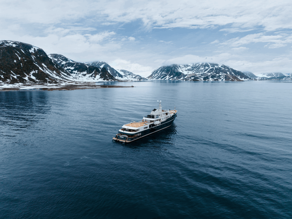 Amenities include a panoramic sun deck with bar and lounge, indoor and outdoor dining rooms, a cinema, gym, boutique, and spa complete with Jacuzzis, sauna, and massage room. A 1:1 crew-to-guest ratio ensures personalized service, while three naturalist guides lead daily excursions by Zodiac or Rafnar tenders. Guests can also enjoy diving, kayaking, paddle boarding, and even mountain biking ashore.